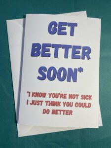 Need a non-traditional card that's full of sarcasm, profanity and innuendo? Need a gift for the person who has everything? It seems my cards and prints are the perfect unique gift for the person who has everything and when you can request your own bespoke piece, it makes it even more special. You could even treat yourself.